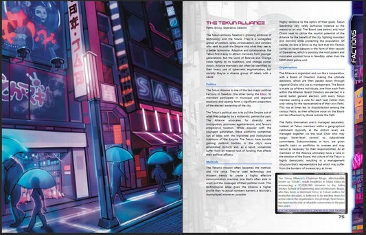 NewEdo is a full length tabletop roleplaying game set in a near future neon samurai world. With a medium-crunch system that focuses on character customization and flexibility, NewEdo is a great game for players who love to build the perfect PC.