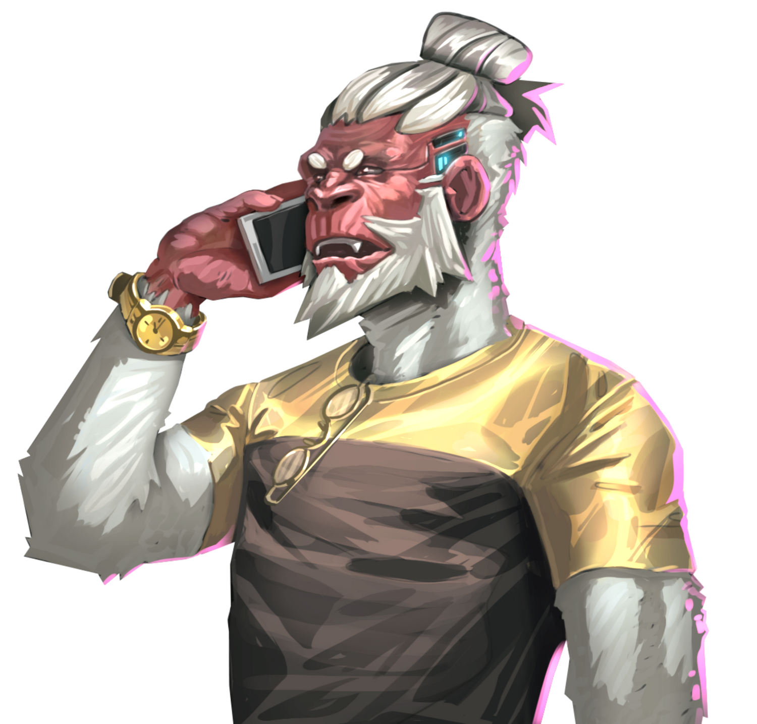 Long-limbed and unpredictable, the monkey-like Saru are an uncommon Lineage in the concrete depths of NewEdo. Saru are often viewed as erratic geniuses or idiot savants, depending on the individual, and while any given member of this Lineage may be as simple as a rock, all Saru have a special relationship with physical space that borders on the mystical.
